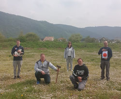 Als Nächstes wurde der komplette Platz umgefräst, um die Wildschweinschäden zu beseitigen. 140 cbm Erde wurden hierbei auf dem Gelände verteilt, Grassamen eingesät, es wurde gedüngt und gewässert.