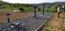 Zweiter Schritt war die Errichtung eines Outdoor-Fitness-Parks mit 6 Trainingsgeräten. Im Anschluss wurde der Bühnenboden gebaut, der im Sommer als kleine Terrasse zum Verweilen einlädt und zusätzlich bei Veranstaltungen natürlich als Bühne dient.